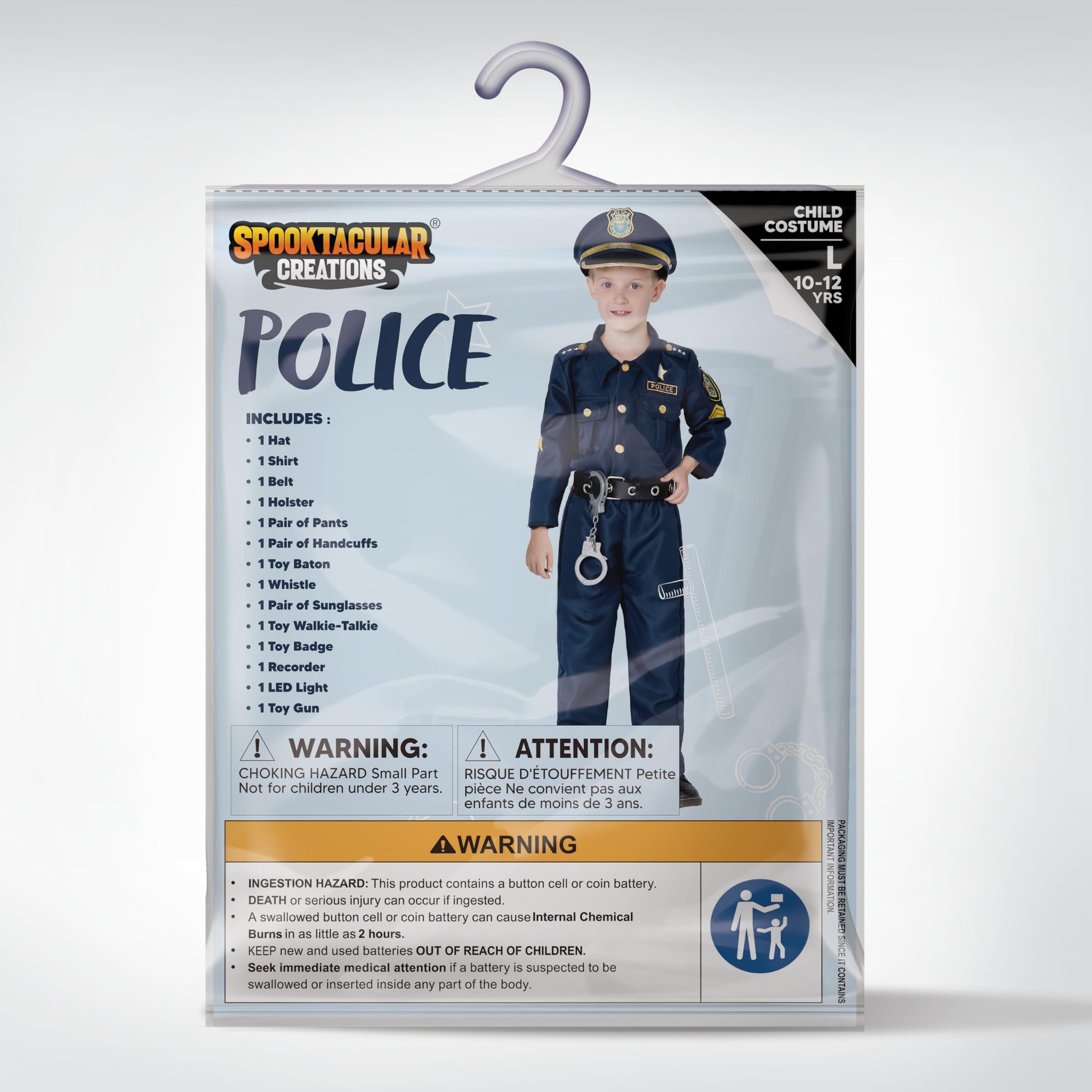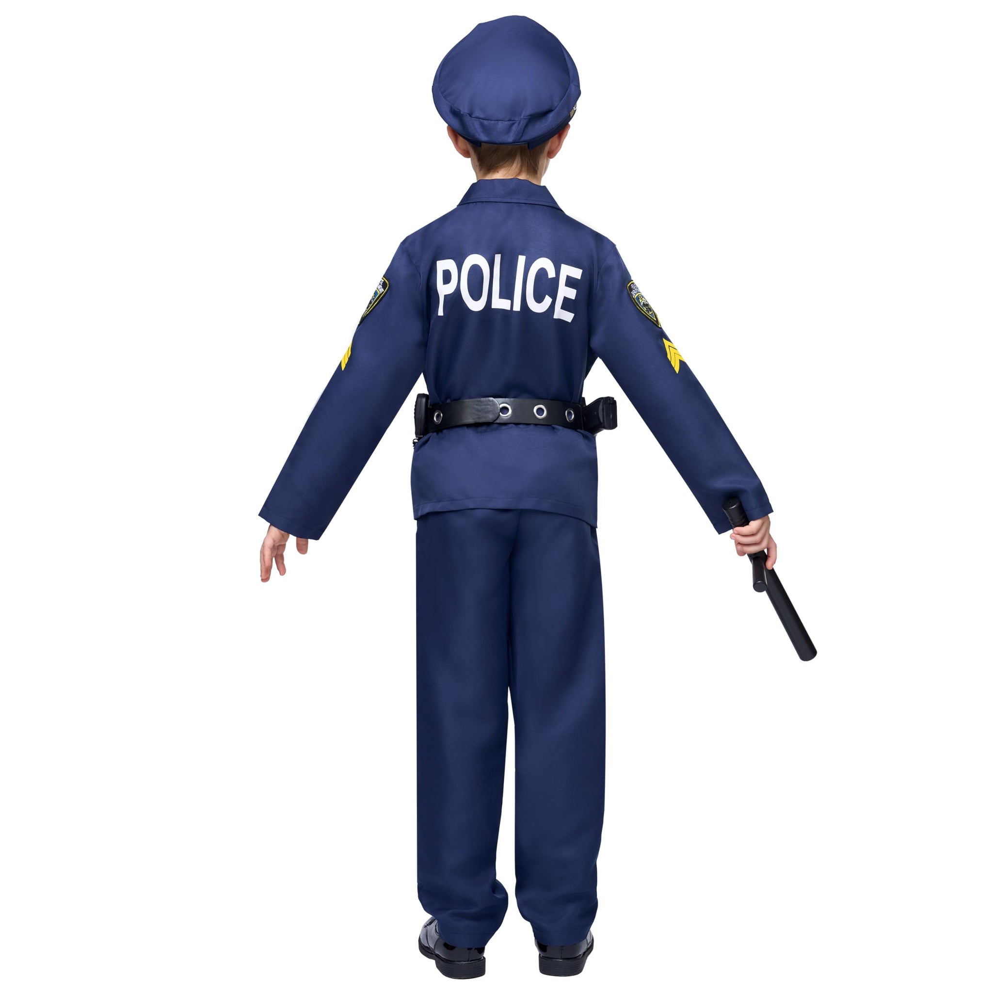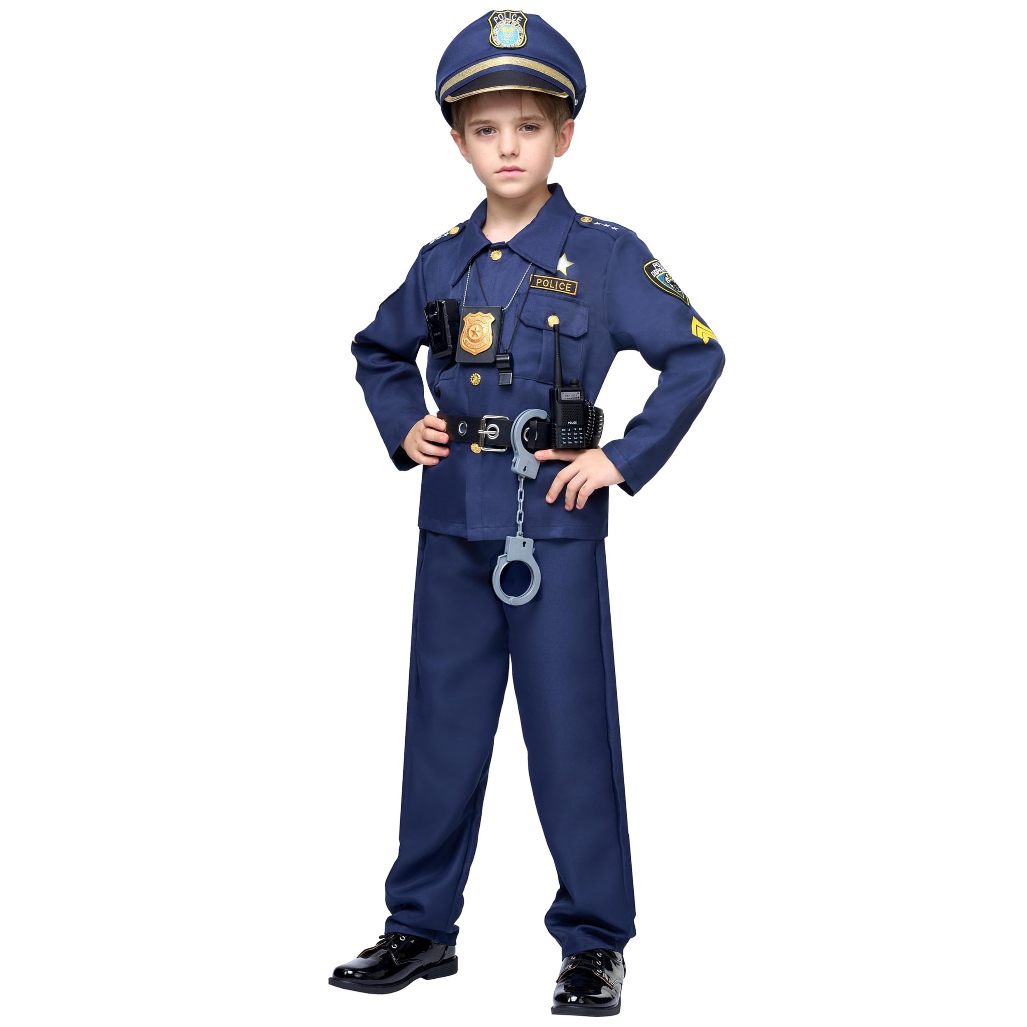 • The Boy Police Officer Costume for Kids Set Includes a Shirt, Pants, Hat, Belt and other necessary police accessories.