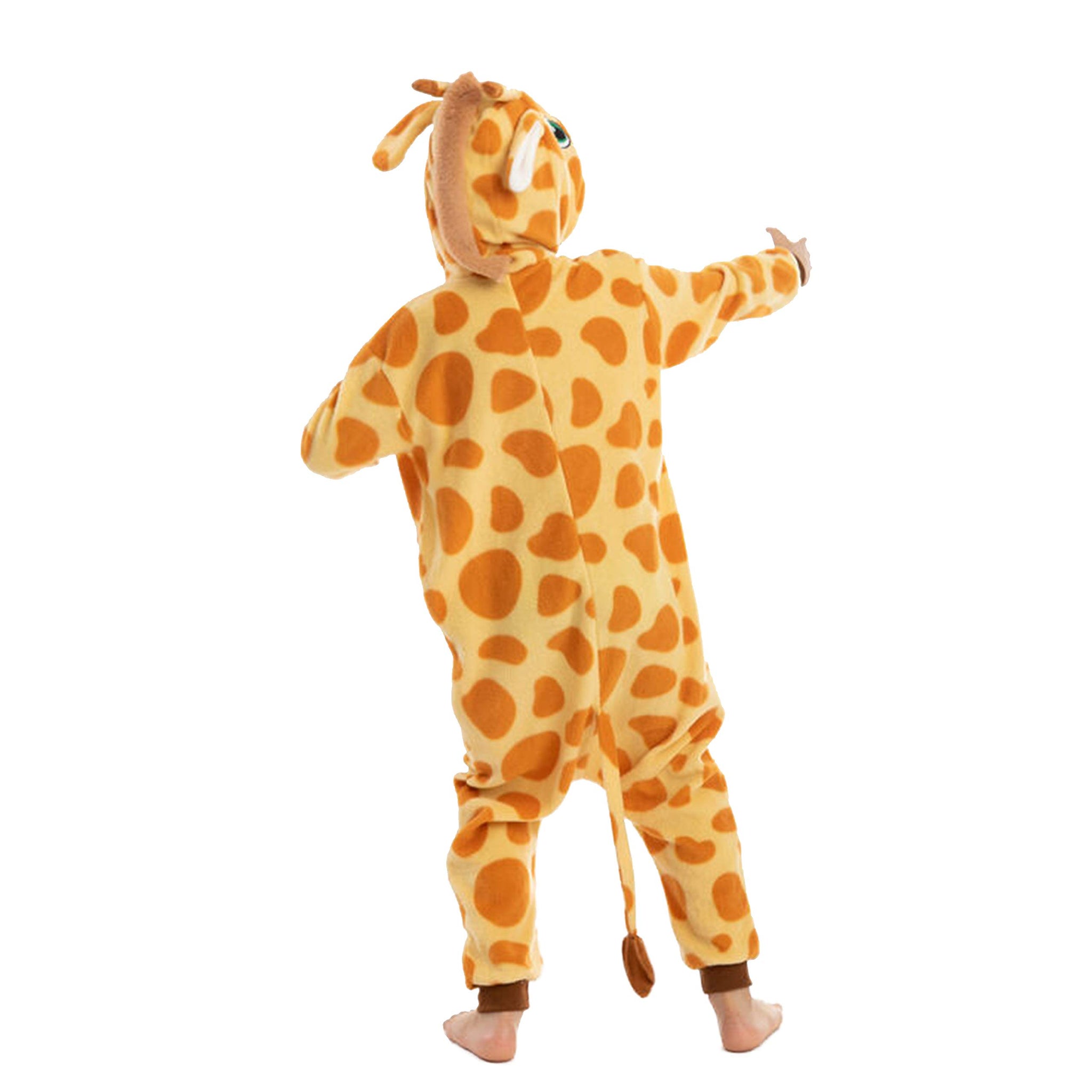- Deluxe Version of Giraffe Jumpsuit One Piece plush dressing up Animal Costume jumpsuit. Child Size:S (5-7yr), M (8-10yr), L (10-12yr). Made with High Quality Plush Fleece Materials.