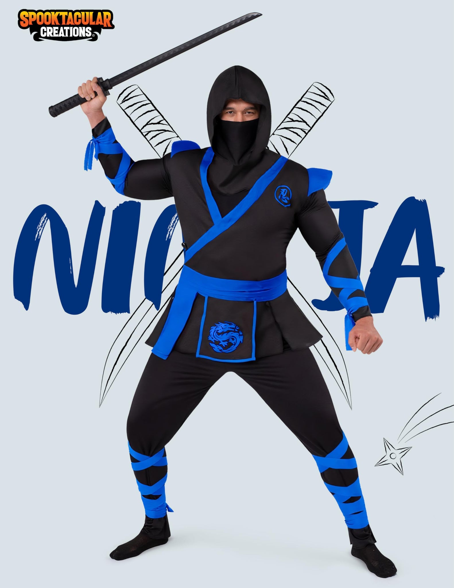 - IDEAL HALLOWEEN COSTUME. If you want to really make an impression at your Halloween costume party, check out our Ninja Adult Men's Costume. Ninjas are always cool, at every age. When you take the kids around trick or treating you are sure to be the coolest dad in town when you dress up as this mysterious ninja. Includes a Hood, a Face Mask, a Shirt with Straps attached on Sleeves, and a pair of Pants with Straps attached on trousers