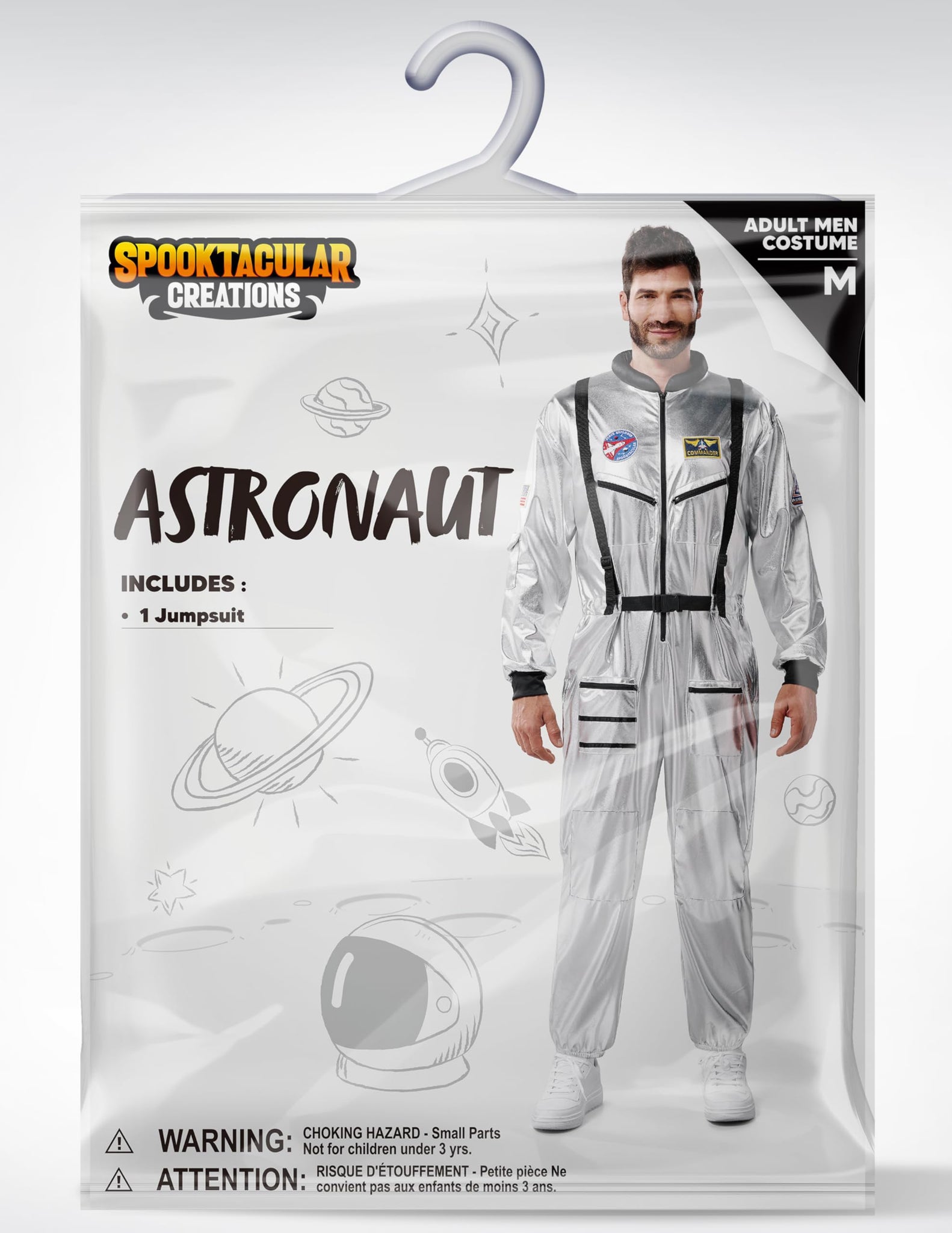 - Package Includes: Astronaut outfit includes 1 full-length metallic silver jumpsuit. One piece of suit can easily complete the outfit, making your character realistic, interesting, and your dressing up in halloween simpler.