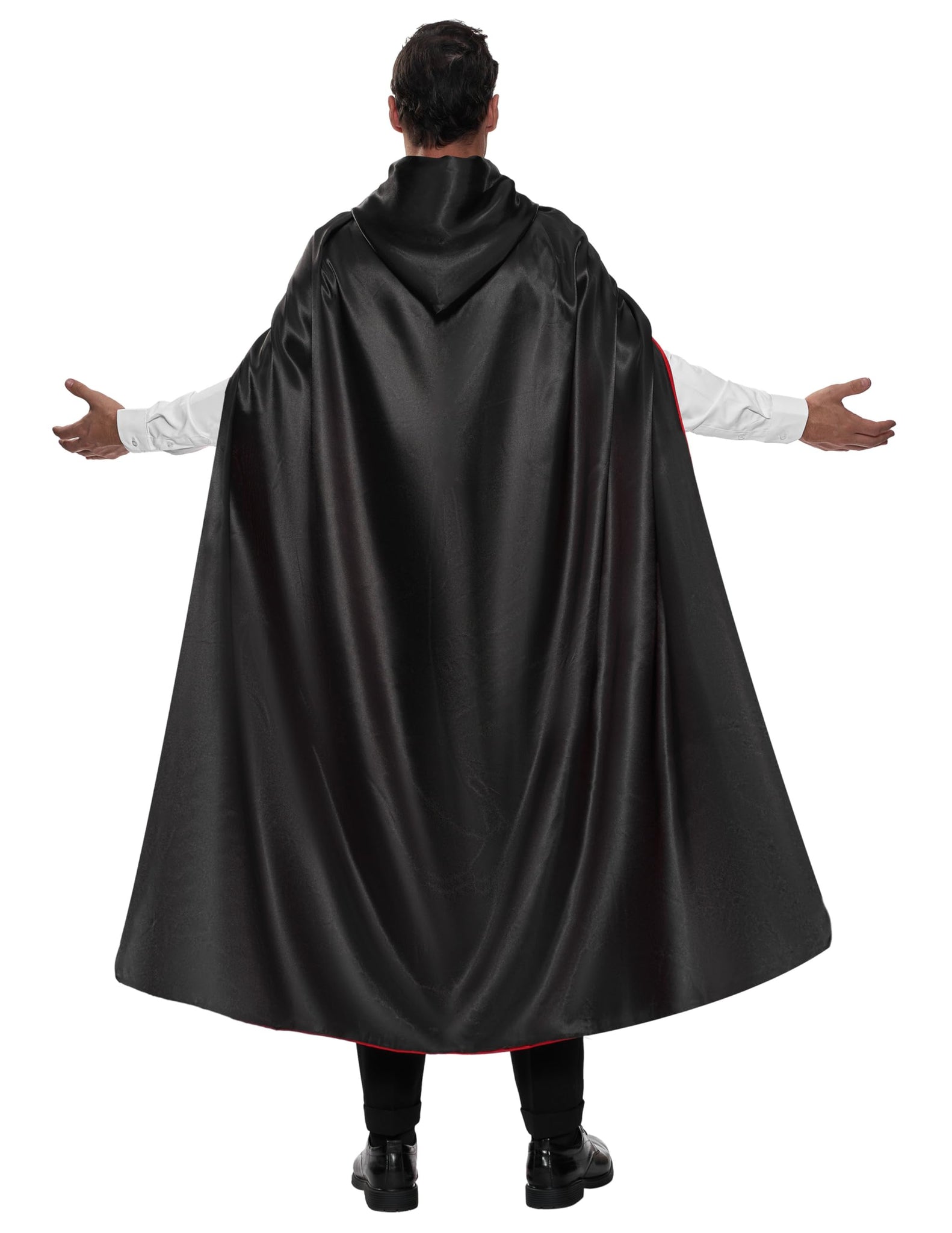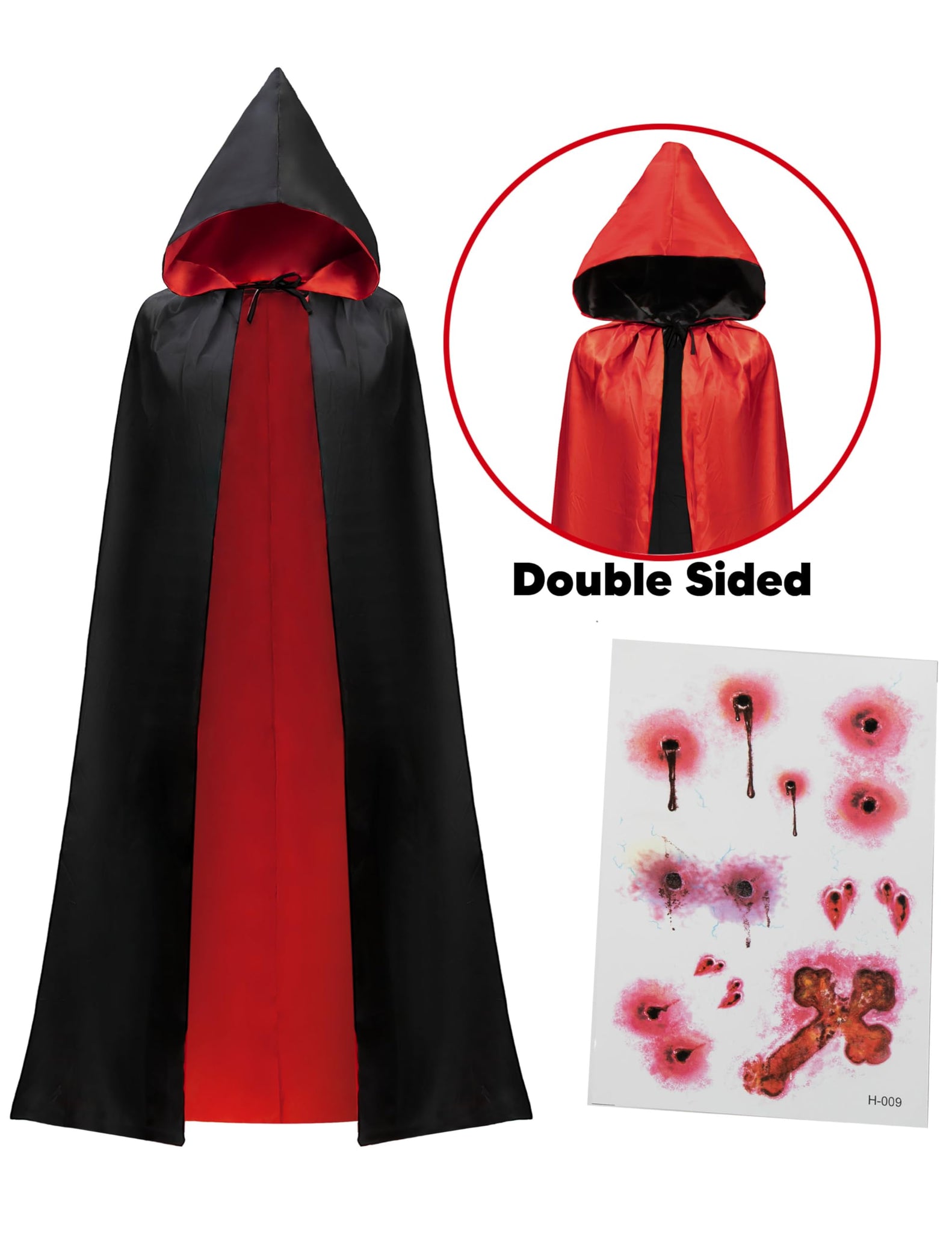 - This Vampire Cape with Hood Set includes adult unisex cape with hood in the color black/red reversible cloak plus tattoo scar. Perfect for Scary Goth Bat Vampire Costume, Unisex Vampire Costume.