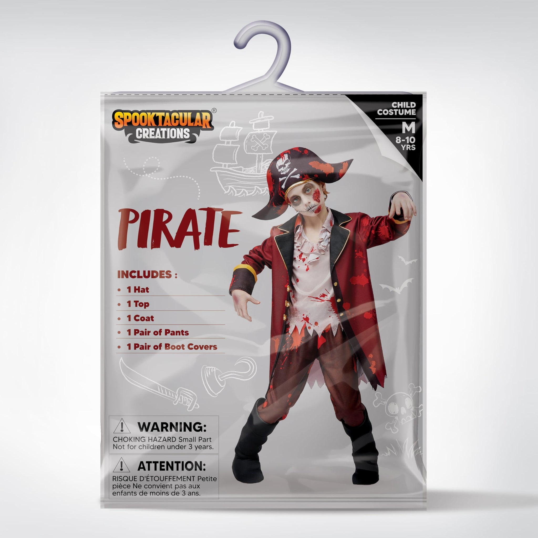 - Set Includes:Our Scary Pirate Zombie Costume set includes everything you need to create a frighteningly fun look, featuring 1 Pirate hat, 1 top, 1 coat, 1 pair of pants, and 1 pair of boot covers.