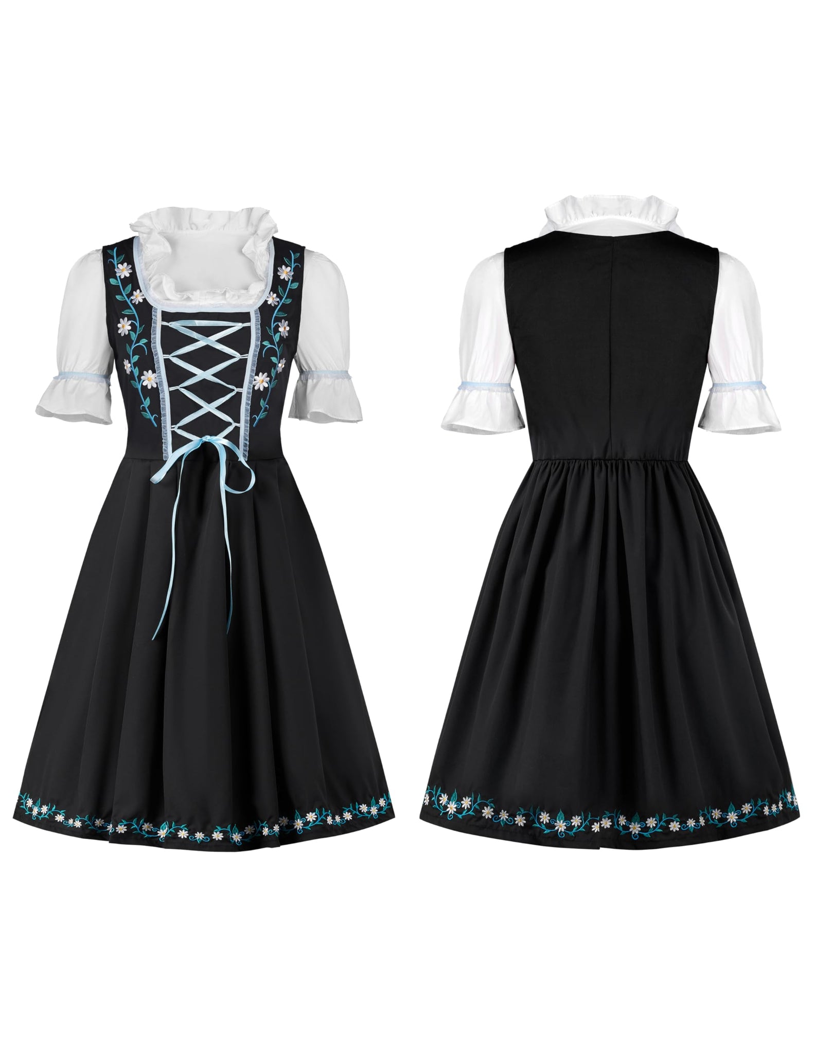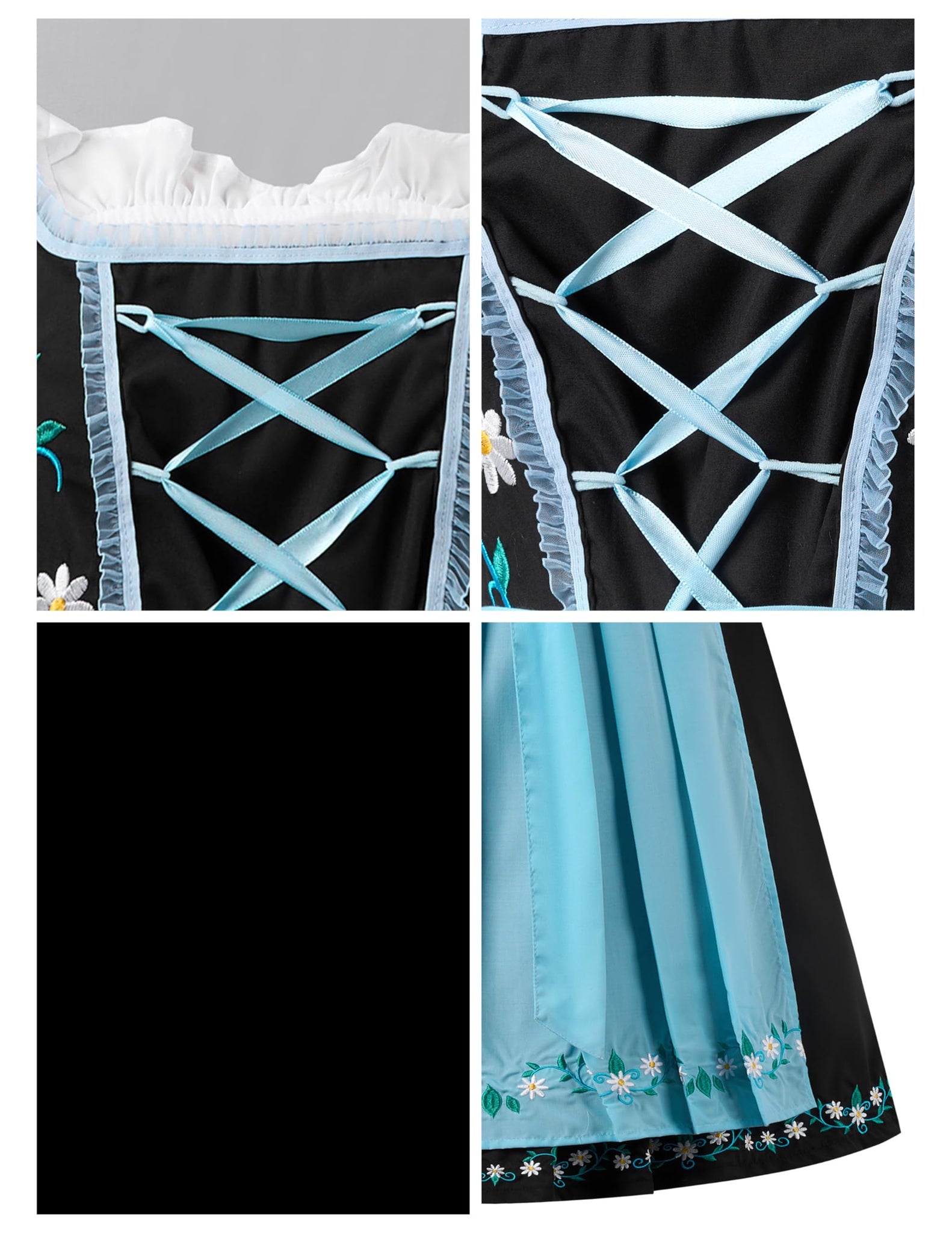 - Elaborate Design Material: Crafted from 100% polyester material. This Oktoberfest dress women set offers moderate elasticity and comfort. It features exquisite embroidery and a bow on the dress and Oktoberfest apron, along with adjustable ribbons in the front and a zipper on the back for easy wear.
