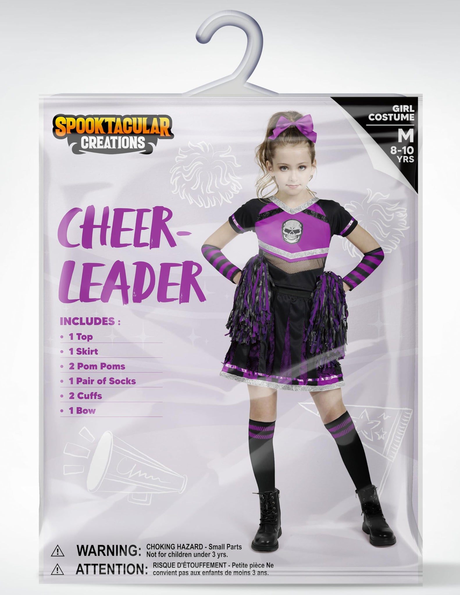 - Super Value Pack: This cheerleader costume set includes 1 top, 1 skirt, 2 pom poms, 1 hair clip, 1 pair of socks and 1 pair of sleeves. It's perfect for any cheerleader going for a more uncanny style. Shake up the traditional sport cheerleading look with our spiritless scary cheerleader costume.