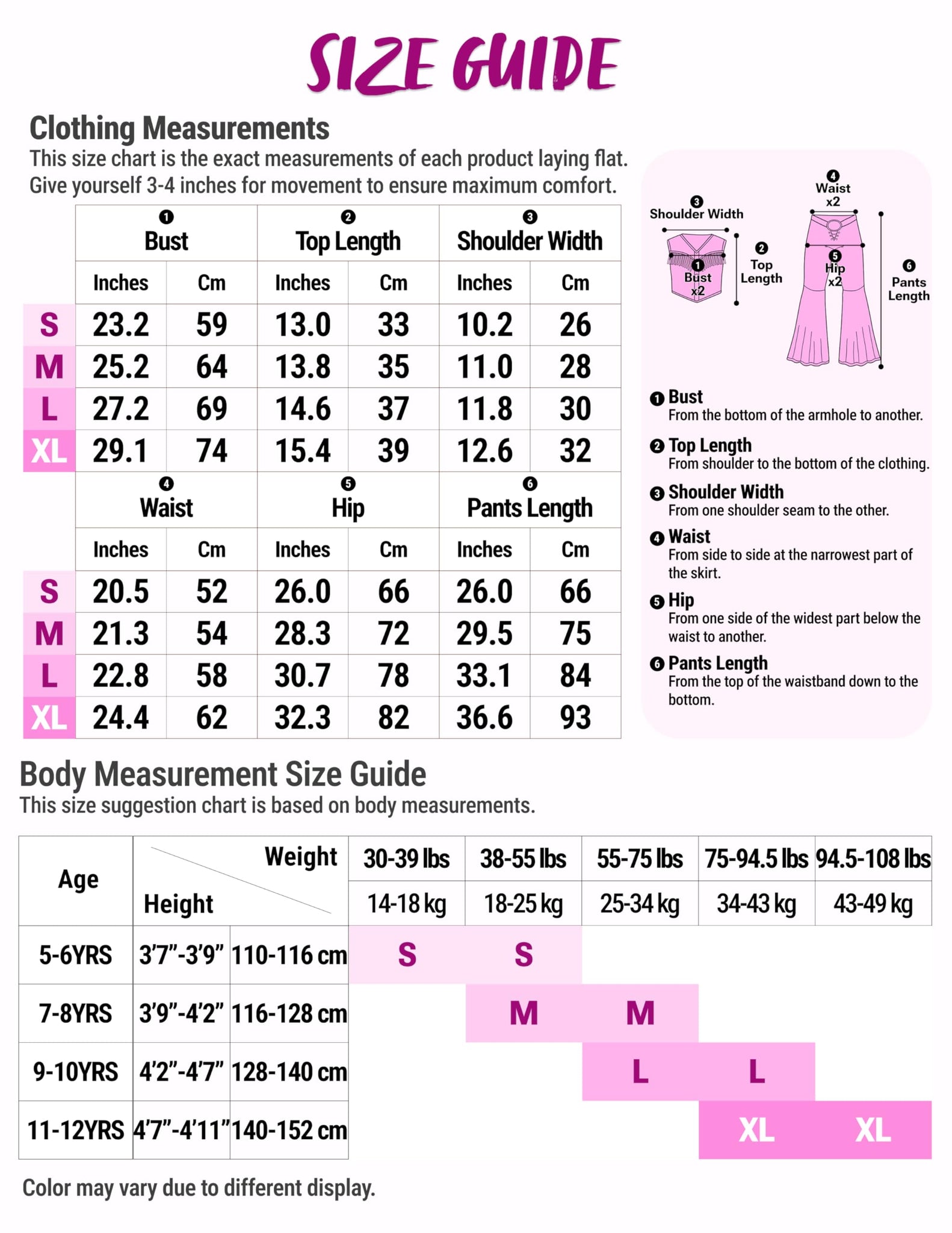 - Flattering Fit Options: Available in Small (5–6 yrs), Medium (7–8 yrs), Large (9–10 yrs), and X-Large (11–12 yrs). The model is 4'6", 57 lbs, and wearing a size M. Our disco dance costume is designed to fit most girls' body types. Please refer to the size chart for the best fit.