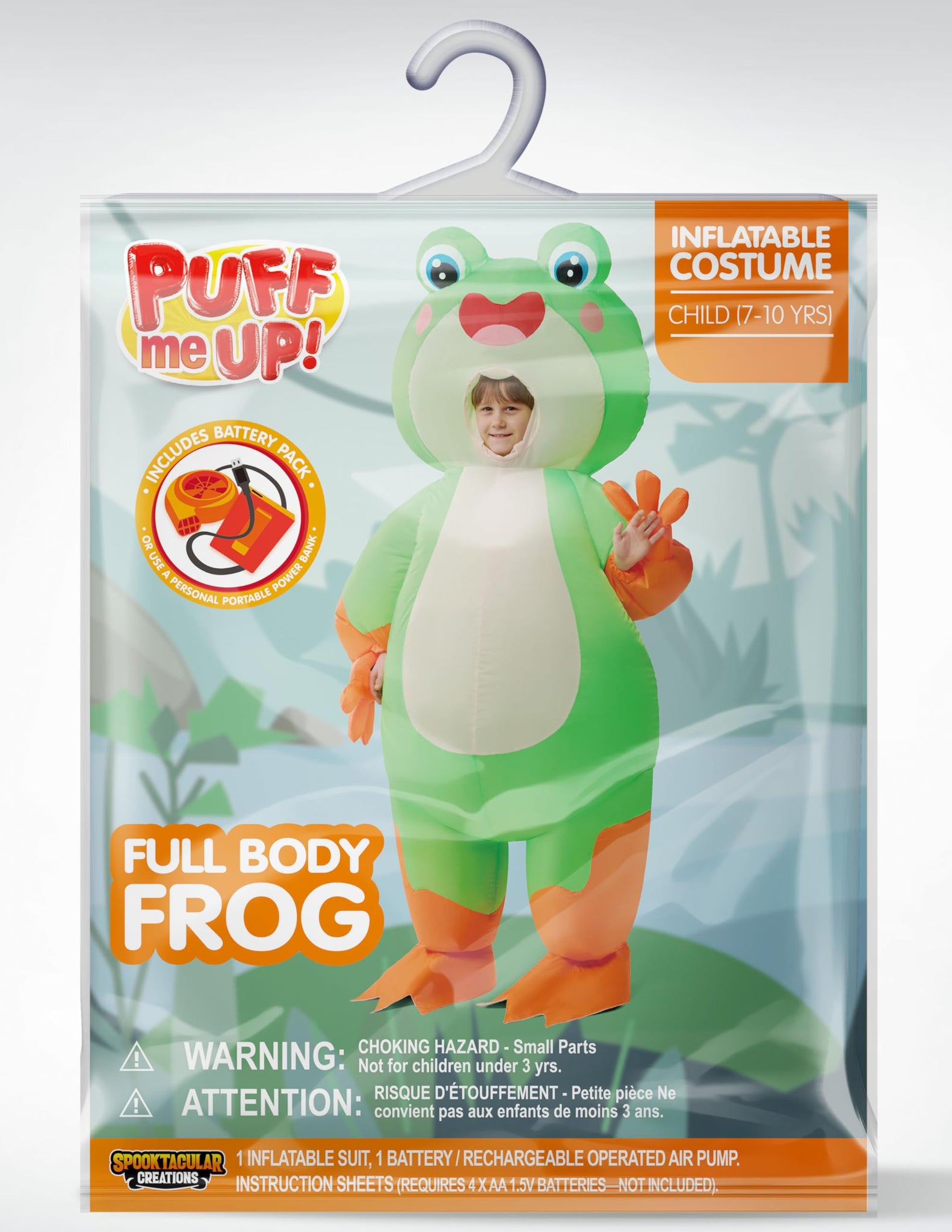 - One Size Fits All: This kids cute frog inflatable costume is specially designed for children's sizes, Designed to fit children up to approx. 5 ft tall. Model shown is 4'6" and 66 lbs for reference.