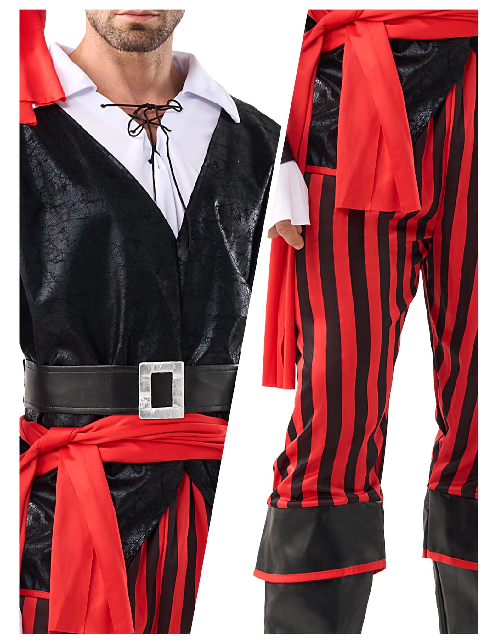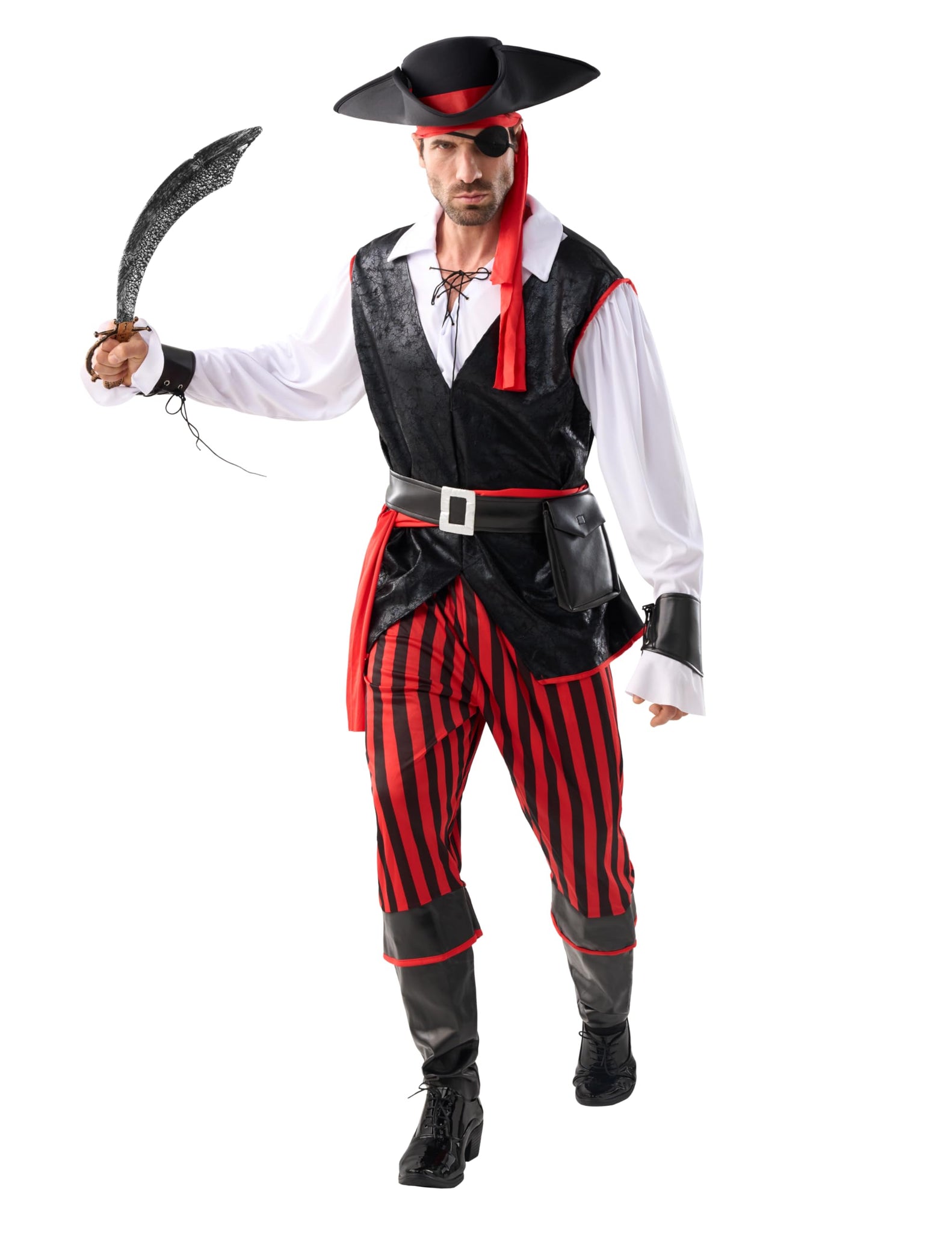 - Super Value Pack for Mens 7 Seas Captain Cutthroat Pirate Role Play and Party Supplies. Excellent for Halloween Costumes Dress Up Parties, Medieval Captain Skullduggery, Costume Adult, Red and Black Pirate Accessories, Rum Pirate Costume, Ahoy Matey Pirate costume, Theme Party, Pillaging Ghost Pirate costume, Ubest Carribbean Pirate Costume,